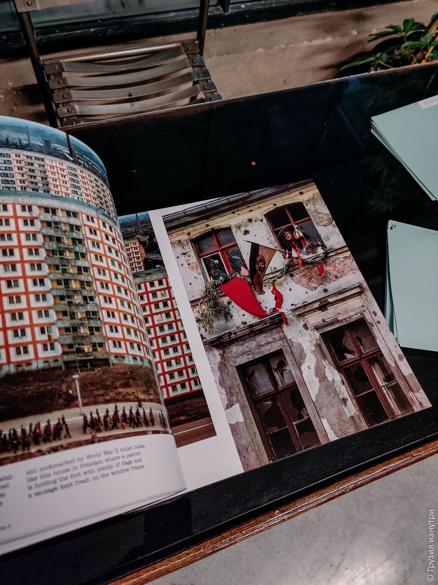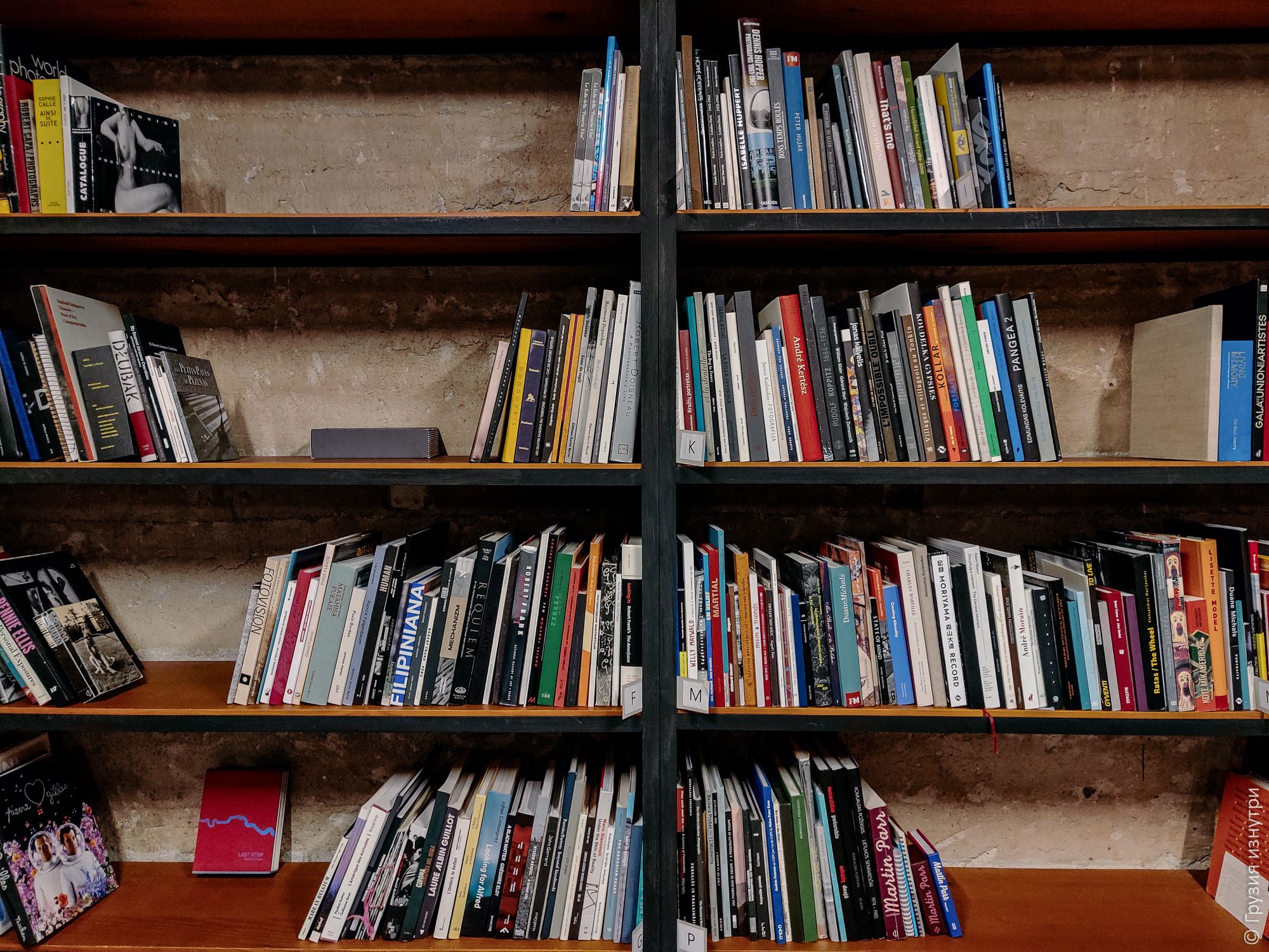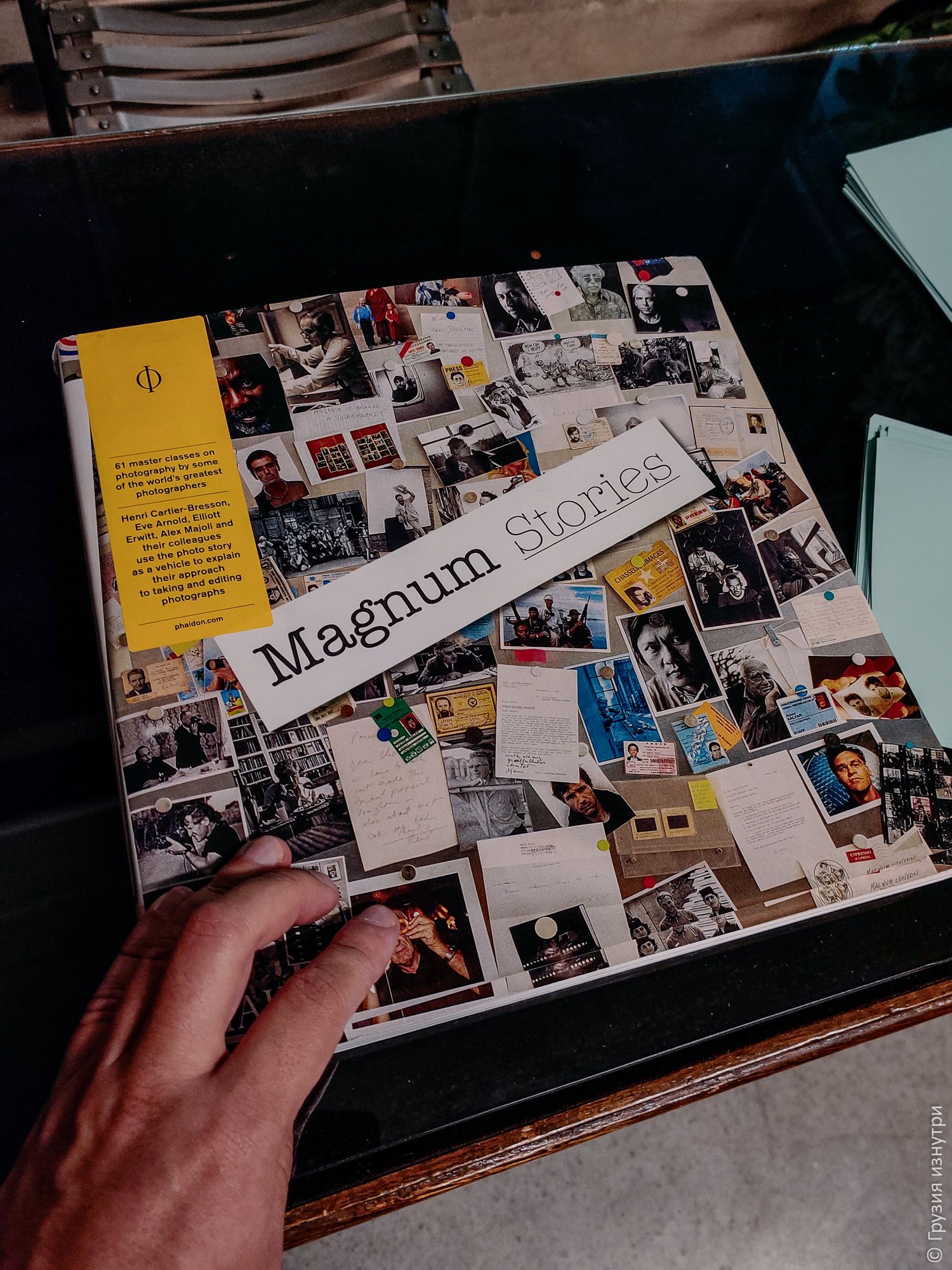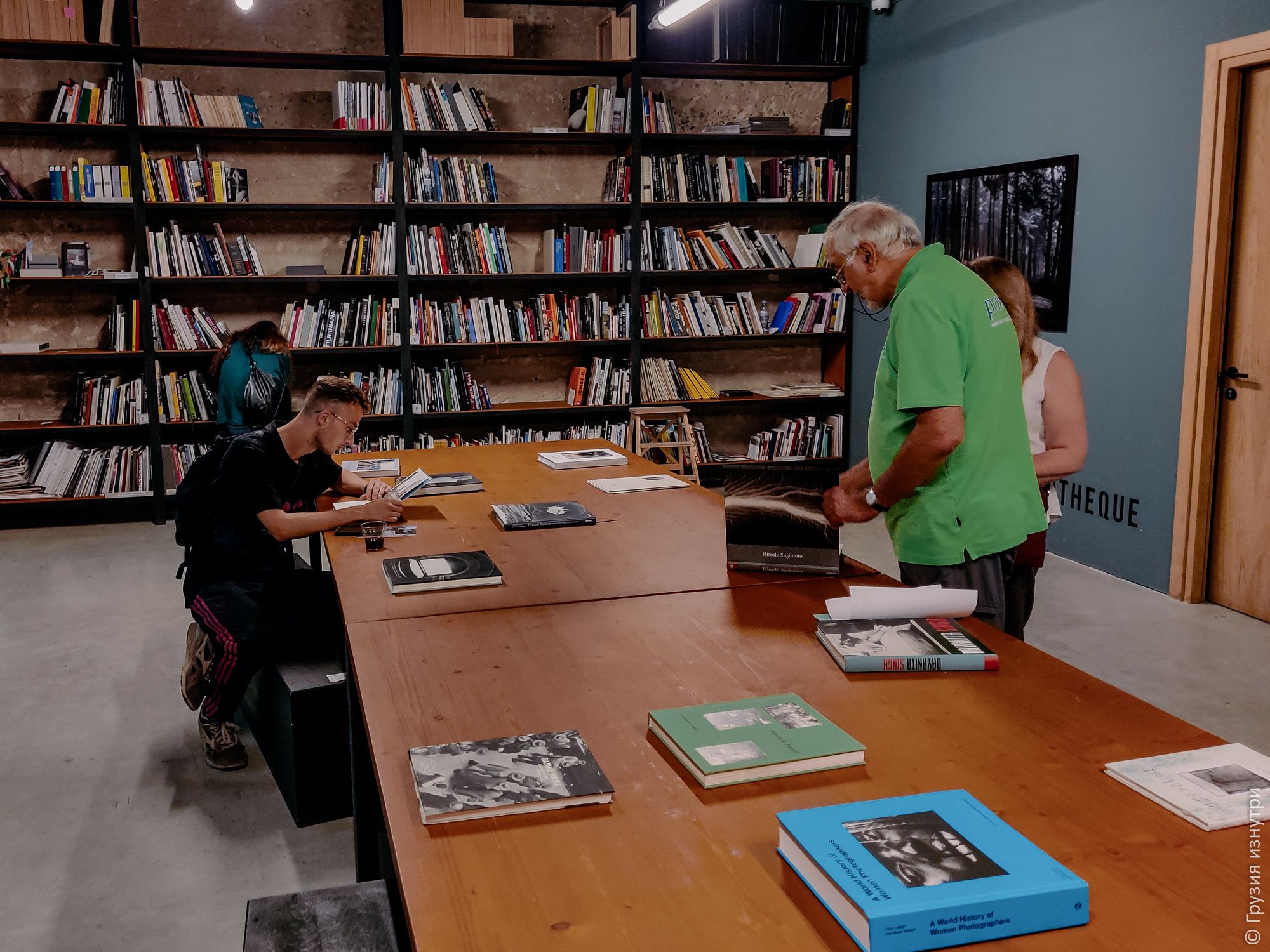In one corner of the space there is a kind of "reading room", where visitors can browse through a large number of photo albums and books by different photographers.