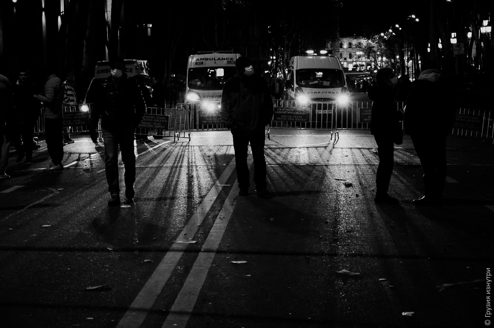 An ambulance was constantly on duty near the protest, helping people affected by tear gas or injured during the clashes.