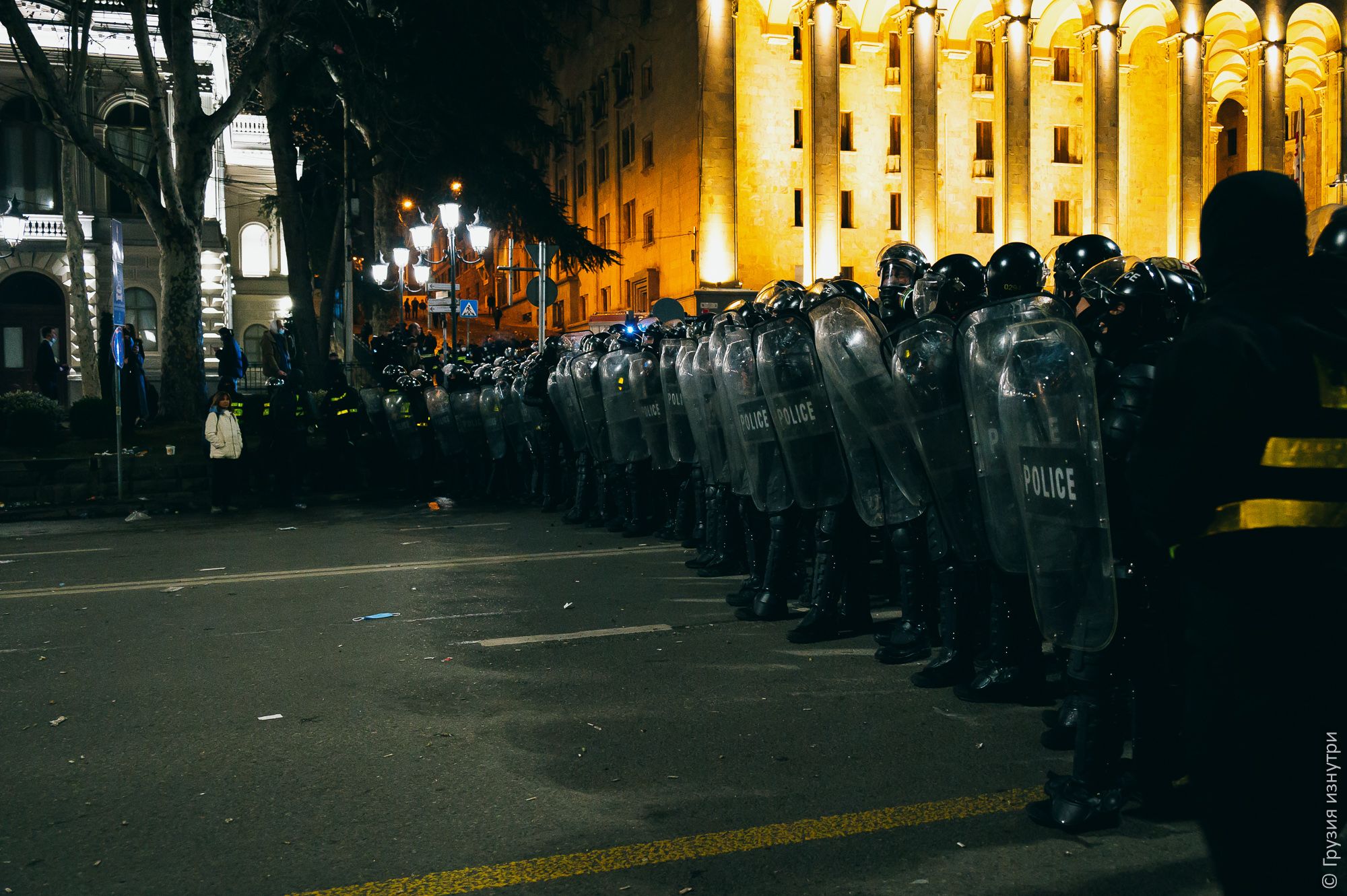 When the gas cleared, the protesters began to return, but by then the police had already cordoned off part of the avenue in front of parliament. So when people came back, they started building a barricade directly opposite the police line.