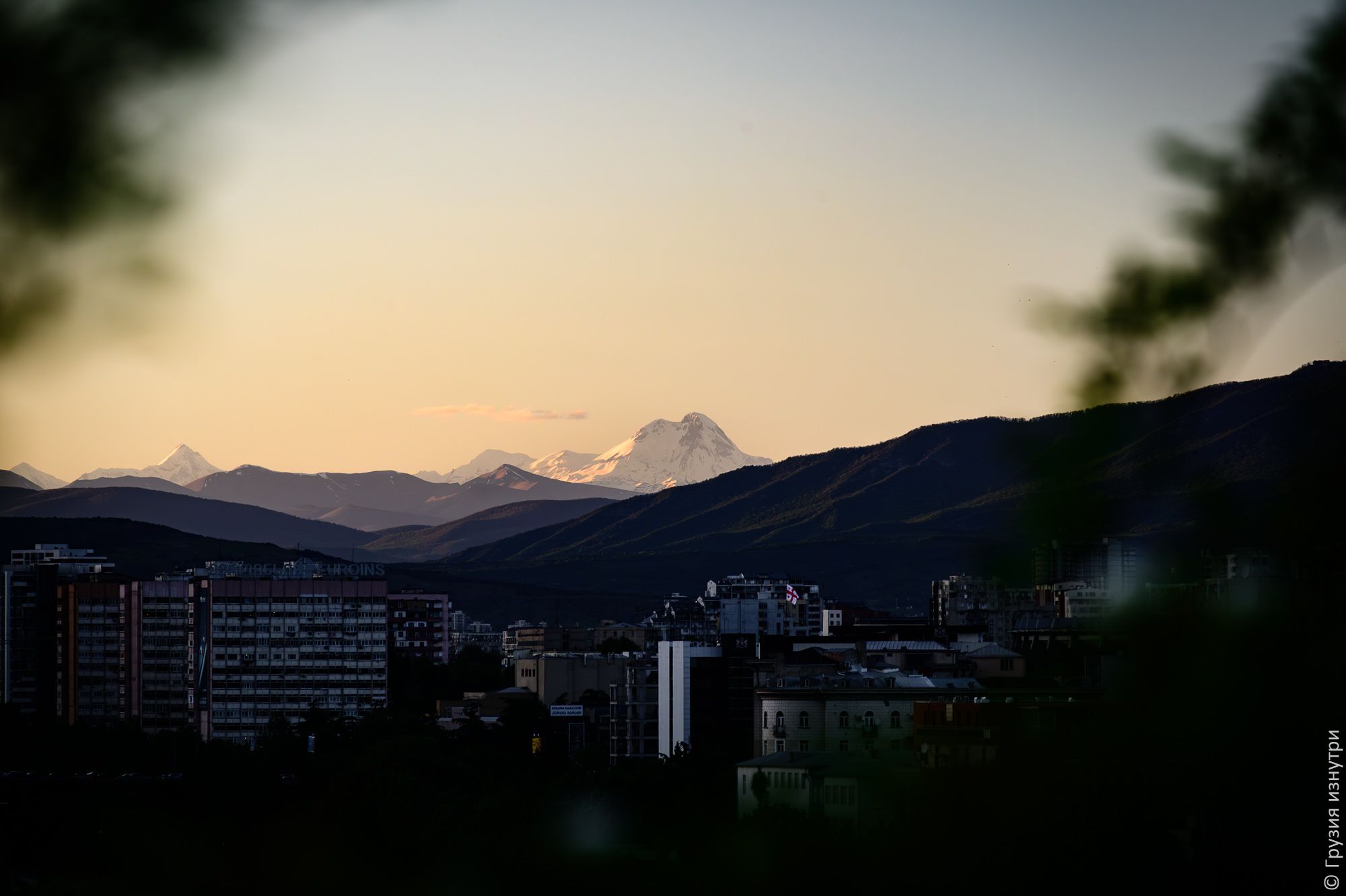 On a clear day, when the air is clean enough, Kazbek can be seen right from the center of Tbilisi, from Rustaveli Avenue. You need to look almost due north from First Republic Square.